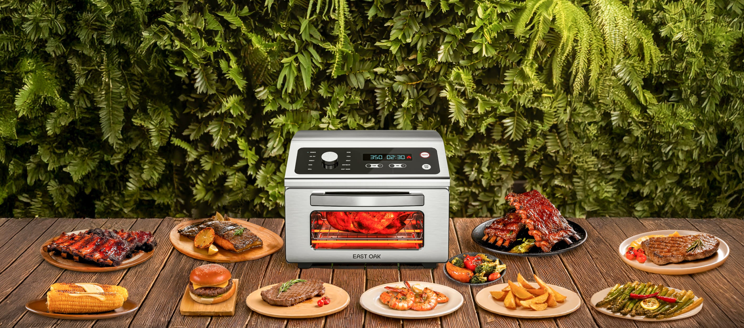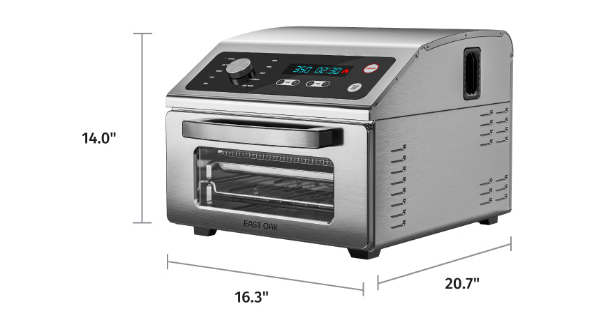 Spacious enough to meet all your cooking needs: toast 4 slices of bread, air fry 5 pounds of chicken wings, bake a 12-inch pizza, or smoke a 12-pound turkey.