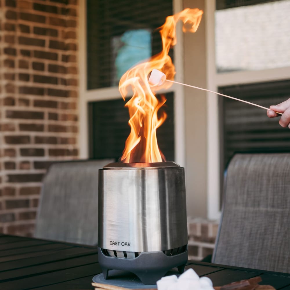 As the heated air exits through vents around the rim, it mixes with the smoke and ignites, creating a secondary burn. This process reduces smoke, giving you a cleaner, more enjoyable fire.