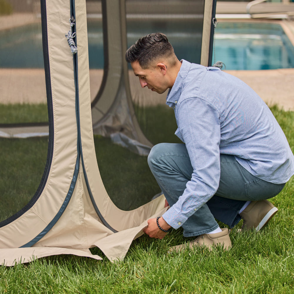The 10x10 screen house provides ample space with UV protection, insect-proof mesh, and a durable frame. Perfect for family outings and easy to take anywhere.